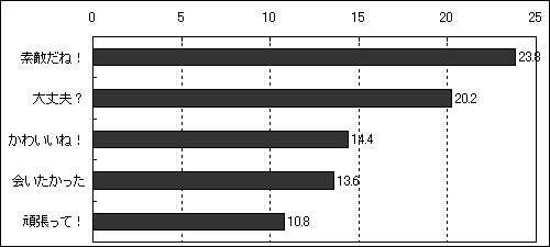 男性用エステティックサロン“ダンディハウス”を運営する同社が標記テーマで女性にアンケート調査を実施した。まず、2006年に最もダンディだった有名人は、政治部門では「小泉純一郎前首相」と「安倍晋三首相」が1位、2位を占めた。スポーツ部門では北海道日本ハムファイターズの「新庄剛志選手」が1位で、2位「中田英寿さん」に倍以上の差をつけて圧勝。芸能人部門では「阿部寛さん」、文化人部門では作家の「リリー・フランキーさん」が各々トップだった。身近な人で一番ダンディなのは?の回答で多かったのは「旦那」(30代から50代ではほぼ4人に1人が「旦那が一番」と回答)で、熟年離婚がいわれる中、固い夫婦愛を感じさせる意外な?結果となった。過去に男性に言われたダンディな言葉は、1位「素敵だね!」、2位「大丈夫?」、3位が「かわいいね!」と続き、ダンディに不可欠な要素は「立ち振舞い」がトップ、以下「教養」「思いやり」と、“内面”を重視する女性の思いが浮き彫りになった。女性がダンディな男性に連れて行ってもらいたのは「バー」「高級レストラン」「高級ホテル」「コンサート」など、殆どが“大人”ならではのスポットが上位に挙げられた。
