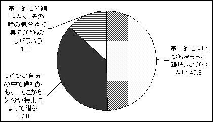 (株)マーケティングジャンクションのモニターサイト「Amazonet」が20歳から59歳の会員を対象に、雑誌をテーマにしたアンケートを実施した。まず、一ヶ月に購入する雑誌数を尋ねたところ、「1冊」が25.0%で最多だった。以下「2冊」15.8%、「3冊」7.3%が続き、「1~3冊」までの人を合計すると48.2%と約半数近くになった。一方で、3人に1人は「雑誌は買わない」33.8%と回答している。雑誌の購入スタイルを見ると、決まった雑誌を買う人が多い様子が窺え、「基本的にはいつも決まった雑誌しか買わない」との回答がおよそ半数の49.8%。男女別で比べると、“決まった雑誌しか買わない”は女性44.0%より男性55.4%の方が多かった。同じ雑誌を買い続けた期間は「~3年」13.3%が最も多く、次いで「~5年」12.2%、「~1年以下」11.8%と続く。「5年以内」が半数(52.7%)を超えている。立ち読みについて聞いて見ると、最も多かった回数は「殆んどしない」30.3%で、「全くしない」10.9%と合わせると4割の人が立ち読みは「しない」41.2%との事。立ち読みするという人の中で多かったのは「1週間に1~2回程度」26.7%、僅差で「1ヶ月に1~2回程度」25.4%が続く。「殆んど毎日」2.1%と「2日に1回位」4.6%を加えると58.8%もの人が立ち読みをしているが、“頻度的”にはあまり高くないと言えそうだ。