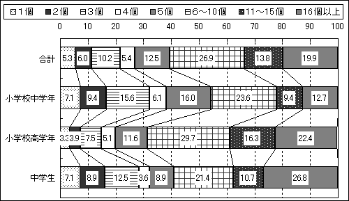 高学年中学生 女の子の友達 67.3 55.1 77.0 56.9 お父さん 54.0 58.5 54.4 38.5 兄弟 31.7 34.3 31.4 33.8 男の子の友達 25.5 24.6 26.9 20.0 片思いの人 17.7 13.1 20.6 16.9 お母さん 17.6 19.5 17.2 13.8 自分 16.8 12.7 17.6 21.5 付き合っている人 8.7 6.8 8.6 15.4 先生 8.2 7.2 9.0 7.7 近所の人 3.9 5.1 3.4 4.6 あげない 7.7 10.2 5.0 13.8 - チョコレートはいくつ用意しますか?(今年バレンタインチョコをあげる女の子)