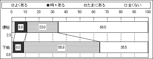 - 便秘/下痢の経験(全体) (単位:%)
