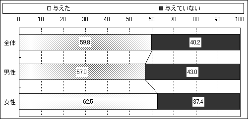 全体 男性 女性 友人 26.3 23.9 29.3 母親 22.8 17.0 30.0 父親 11.7 13.9 8.9 学校の先生 7.0 7.6 6.3 誰にも相談しない 19.8 23.7 15.0