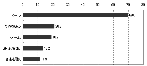 (株)バンダイが小学一年生から六年生の子供を持つ保護者を対象に行なったアンケート調査によると、児童の5人に1人(21.9%)が携帯電話を保有している結果となった。特に女児(27.8%)では男児(16.0%)を1割ほど上回って4人に1人の割合となっている。学年別に見ると、学年が上がるほど、保有率が上がり、六年生では34.3%もの児童が持っている。持たせる理由としては、防犯対策が一番に挙げられる。『習い事の日に、防犯のために持たせています』といった回答が寄せられており、塾や習い事で帰宅時間が遅くなる事が多くなってきている子供達の防犯グッズのひとつとして、特に低学年の児童には保護者の意思で持たせているようだ。年齢が上がると、『携帯電話が欲しい』という子供の希望で持たせている家庭も見受けられた。携帯電話で通話以外にする事は「メール」71.1%が圧倒的に多く、『パパとメールをしています。仕事であまり会えないため、メールでコミュニケーションをとっています』や『毎日、おじいちゃんにメールを送っています』などといったコミュニケーションツールのひとつとして「メール」を使っているようだ。また、『友だち同士でメールをしています。メールを打つのがとても楽しいようです』といったように、友達同士で日常の出来事を伝え合いながら楽しんでいる回答も寄せられており、子供達にとって携帯電話のメールは、現代の交換日記の役割を担っているのかもしれない。