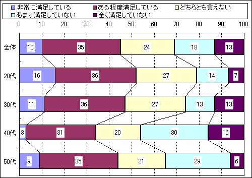 - <満足していない(「どちらとも言えない」+「非常に満足していない」+「ある程度満足していない」)>
