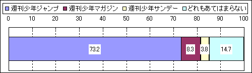 - 週刊少年サンデーと週刊少年マガジンは50周年、週刊少年ジャンプに関しては昨年40周年を迎えており、それぞれに節目の年を迎えています。昭和50年代に生まれた男性にとってこれらの週刊マンガ雑誌は欠かすことのできない思い出の一ページだという人も多いかと思います。そこで、昭和50年代生まれの男性に最も好きだった週刊マンガ雑誌は何かを単一回答形式で聞いたところ、1位「週刊少年ジャンプ」73.2%、2位「週刊少年マガジン」8.3%、3位「週刊少年サンデー」3.8%という結果となり、「週刊少年ジャンプ」が圧倒的なトップとなりました。次に、週刊少年マンガ雑誌の中で、最も好きだったマンガはどれかを自由回答形式で聞いたところ、1位「ドラゴンボール」で38.5%、2位「SLAM DUNK(スラムダンク)」12.5%、3位「こちら葛飾区亀有公園前派出所」3.6%、4位「キン肉マン」2.8%、5位「北斗の拳」2.5%、6位「はじめの一歩」2.3%、7位「幽☆遊☆白書」2.1%、8位「ジョジョの奇妙な冒険」1.8%、9位「聖闘士星矢」1.6%、10位「キャプテン翼」1.5%という結果となり、週刊少年ジャンプに連載されたものが、好きなマンガの上位を占める結果となっています。