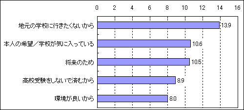 一貫高合計(n=1,000) 66.7 21.3 45.1 関東(n=693) 64.6 21.3 49.6 東京都(n=319) 61.8 25.4 54.5 神奈川県(n=175) 69.7 18.9 41.7 千葉県(n=100) 62.0 16.0 50.0 埼玉県(n=99) 67.7 17.2 47.5 関西(n=307) 71.3 21.5 34.9 大阪府(n=133) 72.2 22.6 32.3 京都府・奈良県(n=85) 60.0 24.7 45.9 兵庫県(n=89) 80.9 16.9 28.1 - 中学受験をして進学したい理由(上位5位まで)