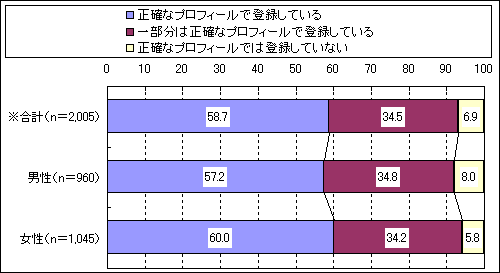 - あなたが登録をしているSNSサイトへは正確なプロフィールで登録していますか。(単一回答形式) (単位:%)