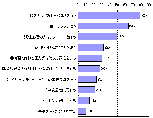 日々、陽射しが強まってきましたが、今年の夏を元気に乗り切るために、主婦はどんなことに気を遣い、どんな工夫をしているのでしょうか? (株)ミツカングループ本社では、東京都と大阪府在住の20代から50代のお料理好きの主婦416人を対象に、『夏の食意識に関する調査』を実施しました、まず、今年の夏を元気に乗り切るためにしようとしている工夫を尋ねたところ、「バランスの良い食事を心がける」83.4%、「3食きちんと食べる」72.8%、「充分な睡眠をとる」71.2%と、食生活と睡眠が大切と考えていることがわかりました。夏の食に関する悩みでは、「食材が傷みやすい」74.0%、「台所で火を使うと暑い」70.2%、「時間が経った料理が傷んでいるか心配」59.9%が上位3位となり、『暑い台所』に加え『食の安全』をどう確保するかが夏の食生活における一番の悩みであることがわかりました。今年の夏の食事・調理の意識を尋ねた場合でも、「食中毒防止を意識する」96.9%が1位となりました。9割以上の主婦が、今年の夏は食の安全を一番に意識していることがわかりました。以下「夏バテ防止を意識する」92.1%、「省エネを意識する」87.3%の順でした。今年の夏は、「食中毒防止を意識する」と答えた人に、具体的に気をつけていることを尋ねました。9割以上の主婦が、「食材によく火を通す」92.1%と回答、続いて「調理の前によく手を洗う」82.9%、「調理器具の殺菌・除菌を心がける」71.7%が挙がりました。いつも夏によく使う調味料は、「お酢」69.2%、「ぽん酢」64.4%、「つゆ」55.3%と、酢や酢を使った調味料が上位を占めました。今年の夏、食の保存性を高めるために使いたい調味料は、「お酢」70.0%、「塩」31.3%、「ぽん酢」23.3%となりました。1位の「お酢」のポイントは、2位「塩」の2倍以上で、主婦は、この夏『食の安全』を守るために、積極的に「お酢」を活用したいと考えていることがわかりました。今年の夏の食事・調理の意識で「省エネを意識する」を答えた人に、具体的にどのようなことに気をつけるか?尋ねたところ、「手順を考え、効率よく調理を行う」74.1%が1位、以下「冷蔵庫の開閉を最小限にする」63.1%、「炊飯器の保温をやめる」57.3%、「冷蔵庫に食品を詰め込みすぎない」55.6%となり、電気器具の使い方より、手順をよく考え、効率のよい調理をすることが省エネにつながると考えていることがわかりました。今年の夏の食事・調理の意識で「食事の用意の時間を短くしたい」と答えた人に尋ねた『時間を短くする工夫』でも、1位は「手順を考え、効率よく調理を行う」78.8%で、2位「電子レンジを使う」63.7%を15.1pt引き離しました。夏の省エネ調理のポイントは、『手順を考え、効率よく調理を行う』ことと言えそうです。