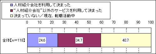 ソフトバンク・ヒューマンキャピタル(株)では、過去1年以内に転職活動をした25歳から39歳の正社員・契約社員・派遣社員に対し、人材紹介サービスに関する調査を行いました。最初に、転職活動で利用している/利用したサービスを尋ねたところ、「転職サイト」67.3%、「ハローワーク」63.5%、「転職情報誌」38.0%となりました。(ここからは、転職活動で「人材紹介会社を利用している/利用した」と回答した人に質問します)人材紹介会社を何社利用したか?尋ねたところ、「1社」33.9%、「2社」28.8%、「3社以上」37.2%となり、66.0%が複数の人材紹介会社を利用していました。人材紹介会社を利用する理由を尋ねました。「多くの求人情報の中から希望する会社を自分で見つけるのは大変だから」67.8%、次に「非公開求人の紹介があるから」61.0%、「自分の代わりに担当者が企業側とのやりとりをしてくれるから」50.8%となりました。また、人材紹介会社を選ぶ際に重視するポイントを尋ねたところ、92.4%が「自分の希望する求人情報があるかどうか」と回答しました。次に高かったのは「担当者の対応」61.9%、「取り扱っている求人情報数」58.5%となっています。人材紹介会社を利用して良かったと思うか?尋ねました。「とても良かったと思う」23.7%、「やや良かったと思う」46.6%と回答した人は70.3%となりました。具体的に人材紹介会社を利用して良かった点・良くなかった点を挙げてもらいました。良かった点は、「自分の希望する求人情報がある」63.6%、次に「取り扱っている求人情報数が多い」50.0%、「非公開求人を紹介してくれる」46.6%、逆に良くなかった点は、「希望しない求人を薦められる」50.8%、次に「自分のペースで転職活動ができない」33.9%、「採用基準が高くなる」26.3%となりました。転職先の決定状況を確認したところ、「人材紹介会社を利用して転職先が決まった」割合は24.6%、「『人材紹介会社』以外のサービスを利用して決まった」34.7%、「決まっていない/現在、転職活動中」40.7%となりました。人材紹介会社に期待することを尋ねたところ、「自分の希望する求人情報があること」87.3%、「取り扱っている求人情報数が多いこと」76.3%、「担当者の対応が良いこと」63.6%となりました。