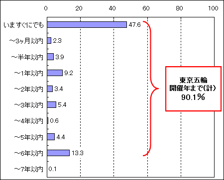 ((1)より続く)仕事に対する意識として、「“おもてなし”のプロを目指したいか」を聞いたところ、70.2%が「目指したい」と回答しました。男女別に、“おもてなし”のプロを目指したいとした割合をみると、男性の65.2%に対し、女性では75.2%と4人に3人の割合となりました。次に、「現在、業務上身につける必要があると感じる外国語会話」を聞いたところ、「英会話」72.7%が際立って高く、また、「今後、業務上必要になるシーンが増えると思う外国語会話」でも「英会話」68.7%がトップになりました。また、「現在、英会話を業務上身につける必要がある」と回答した方に、いつまでに身につける必要があると感じるか聞いたところ、「いますぐにでも」47.6%が最も多くなり、「東京五輪開催年まで(計)」は90.1%という結果となりました。続いて、現在、英会話の勉強をしているか聞いたところ、「勉強している(会社が研修を用意)」1.2%、「勉強している(会社から費用のサポートあり)」1.4%、「勉強している(会社からサポートなし)」15.6%となり、『勉強している』ビジネスパーソンの割合は17.8%となりました。仕事に対する意識別にみると、“おもてなし”のプロを目指したい層では『勉強している』割合が21.7%と5人に1人以上となり、目指したくはない層(8.7%)の2倍以上となりました。英会話ができるようになったら生まれると思う変化について、外国人のお客様への接客では、「スムーズに対応できる」49.9%が最も多く、次いで、「日本人と同レベルの接客ができる」49.6%、「コミュニケーションがとれる」37.0%、「きめ細やかなサービスが提供できる」30.8%が続きました。また、自分自身の変化を聞いたところ、最も多かったのは「自分に自信が持てる」で65.8%と際立って高く、「向上心が強まる」35.6%、「行動が積極的になる」34.8%が続きました。これまでの英語学習について、「小学校から英語教育がはじまっている最近の小学生がうらやましい」では、「非常にそう思う」34.0%、「ややそう思う」29.1%となり、合わせて63.1%が同意を示しました。また、「学生時代にもっと英語を頑張って勉強すればよかった」では、「非常にそう思う」が45.2%、「ややそう思う」が27.9%で、73.1%が同意する結果となりました。
