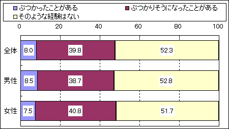 株式会社ライフメディアのリサーチバンクでは、全国の10代から60代の男女を対象に、「歩きスマホに関する調査」を実施しました。はじめに、スマートフォンの所有について尋ねたところ、全体の54%が「持っている」と回答しました。次に、「歩きスマホ」という言葉を知っているか尋ねたところ、全体の76%が「知っている」と回答しました。また、スマホ所有者は84%、スマホ非所有者は67%が「知っている」と回答し、スマホ所有者の方が認知率が高い結果となりました。続いて、スマホ所有者に対し、歩きスマホをすることがあるか尋ねたところ、半数以上の62%が「ある」と回答しました。また、歩きスマホ経験者に対し、歩きスマホでどのような機能を使うのか尋ねたところ、男性は「地図」「メール」が、女性は「メール」「通話」が上位となりました。更に、歩きスマホをしているときに人にぶつかりそうになった経験を尋ねたところ、8%が「ぶつかったことがある」、40%が「ぶつかりそうになったことがある」と回答しました。反対に、歩きスマホをしている人が自分にぶつかったりした経験があるか尋ねたところ、14%が「ぶつかってきたことがある」、39%が「ぶつかりそうになったことがある」と回答し、半数以上が危険な目にあったり、あいそうになったりしている結果となりました。歩きスマホも「歩きたばこ」のように法令や条例で規制したほうが良いと思うかとの質問には、60%が「規制したほうが良い」と回答しました。また、スマホ非所有者の71%が「規制したほうが良い」とし、スマホ所有者は「規制したほうが良い」と回答したのは50%程度となりました。歩きスマホ経験者に対し、歩きスマホが法令や条例で規制されても歩きスマホをするか尋ねたところ、「しなくなると思う」と回答したのは31%でした。半数近くの49%は「控えるようになる」と回答しましたが、11%は規制されても「すると思う」と回答しています。最後に、歩きスマホについての意見・エピソードを尋ねたところ、「歩きスマホをしていた人が駅の階段で転げ落ちていた。幸い人を巻き込んでいなかったので良かった。本人が痛い目を見るのは自業自得である。」(京都府:40代男性)、「ぶつかってもすみませんの一言があればまだ良いのですが、反対に睨まれたり無視したりでマナーが悪いです。規制はあった方が良いと思います。」(東京都:60代女性)、といったコメントが寄せられました。