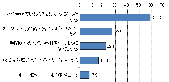株式会社紀文食品では、先日発表した『紀文・鍋白書2025年度版(前編)』~紀文・主要7地域家庭の鍋料理調査2025~に続き、今回は後編として「紀文・47都道府県家庭の鍋料理調査2025」の調査結果をお届けします。現在、私たちの生活を直撃している物価高。物価高が続く世の中でのおでん事情を調べるべく、物価の上昇を感じる前とそれ以降でおでんを作る回数に変化はありましたか?とお聞きしたところ、6割以上の方が「変わらない」62.9%と回答されました。また、「おでんをつくる回数が増えた」「おでんを作る回数が減った」と回答された方それぞれにその理由をお尋ねたところ、「材料費が安いものを選ぶようになったから」がどちらにおいても1位になりました。また、どちらもトップ5以内に「水道光熱費を気にするようになったから」がランクインしており、おでんをつくる回数が増えても減っても、その背景が直接的な家計の支出に結びついているようです。一方で、価格とは直接結び付かない「手間がかからない料理を作るようになったから」という理由が、増えた方と減った方の両方で上位に入っています。つまり、おでんは“手間がかかる”と考えている方と“手間がかからない”と考えている方の両方がいるということになります。そこで、「手間がかからない料理を作るようになったから」と回答された方々がそれぞれおでんを作る時によく入れているものを調査してみました。おでんは手間がかからないと考えている方の上位には「ちくわ」67.8%、「はんぺん」55.2%、「さつま揚」54.0%が入っている一方、手間がかかると考えている方の上位には「ちくわ」76.4%、「大根」72.4%、「こんにゃく」72.0%がランクインしています。ここからは、「紀文・47都道府県家庭の鍋料理調査」として、2025年の結果の中から、「おでん」に関するトピックスを紹介します。物価高によるおでんを作る回数の変化で「おでんは作らない」と回答された方以外にお聞きしたおでんによく入れるものは「ちくわ」63.8%がトップ、2位が「こんにゃく」58.3%、3位が「大根」58.2%という結果になっています。ちくわが1位になるのは、4年連続です。